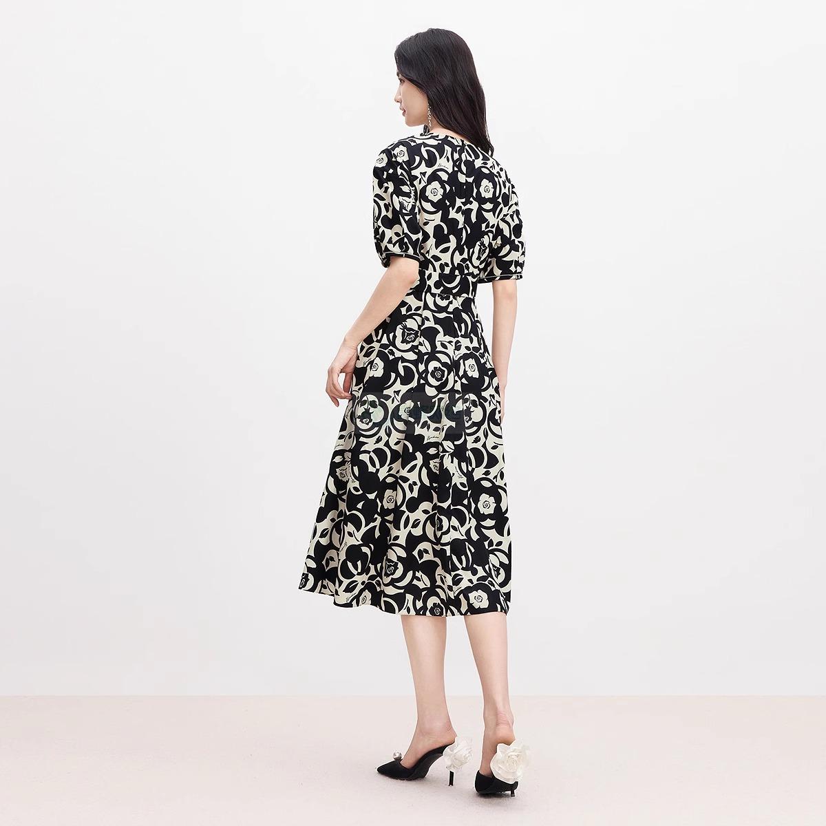 2025年夏季新款阳光棉法式优雅浪漫几何印花短袖连衣裙女