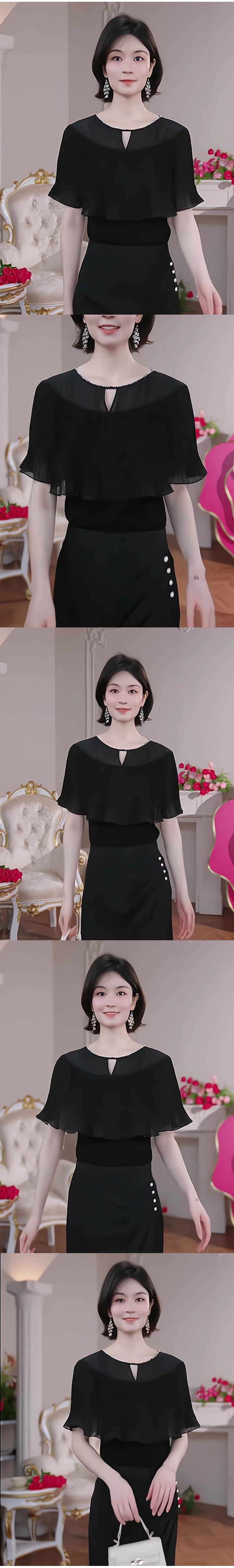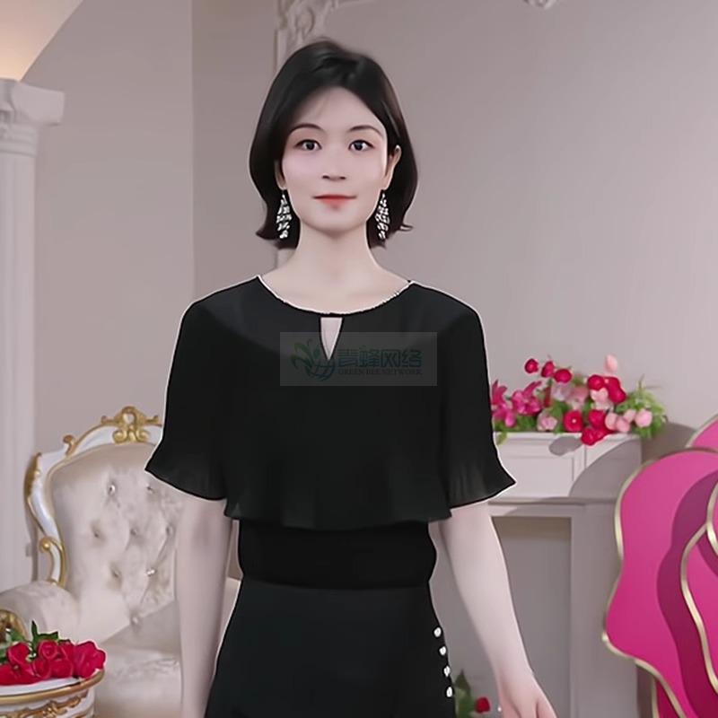 轻奢优雅黑色短袖针织衫女装2025夏季新款荷叶边气质镂空薄款...