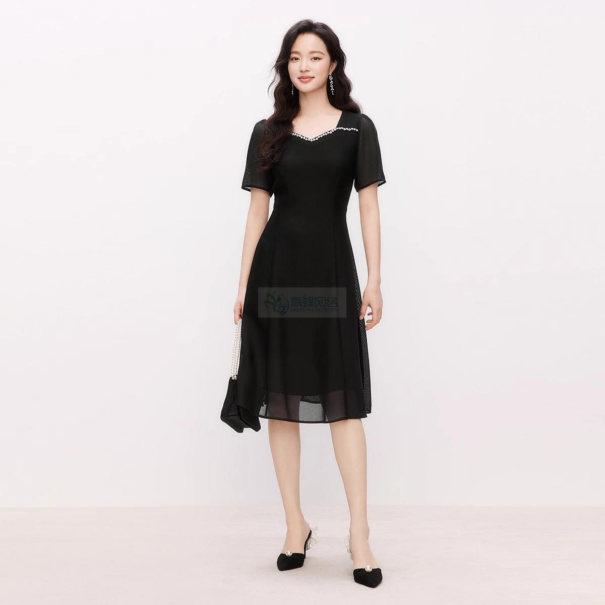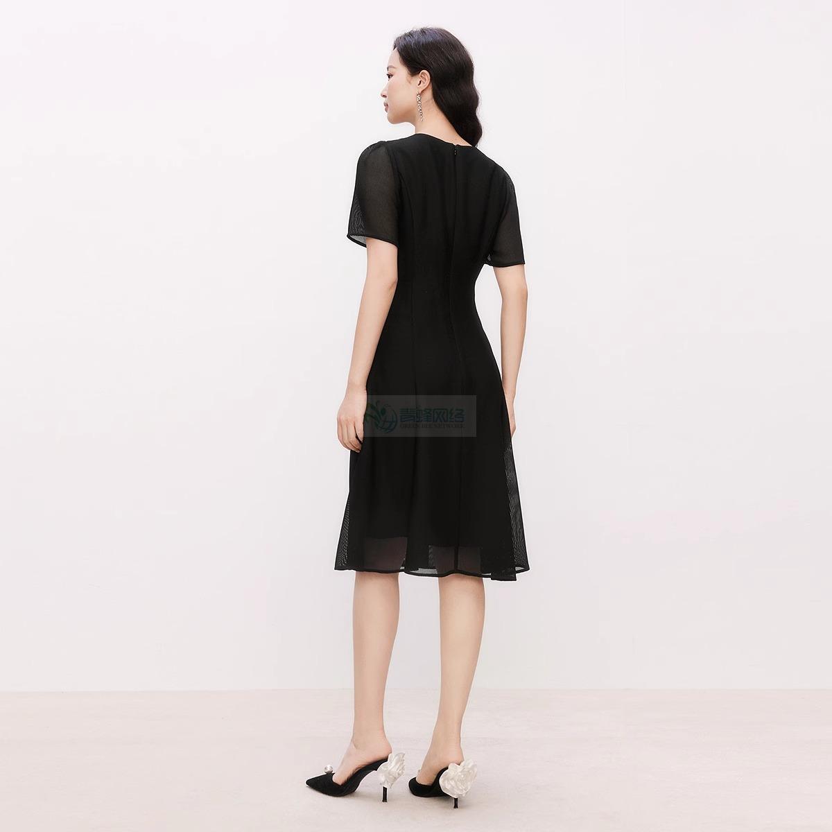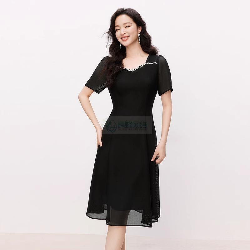 【盈动绽放】2025年夏季新款优雅连衣裙女拼接气质中长裙