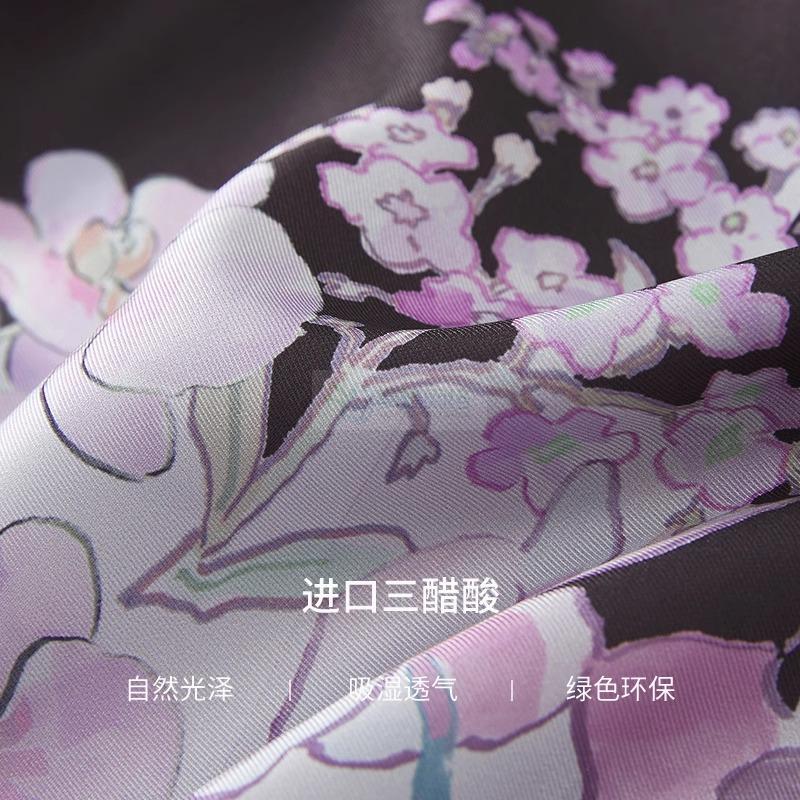 法式优雅天丝醋酸碎花裙荷叶边V领无袖连衣裙女夏白色长裙