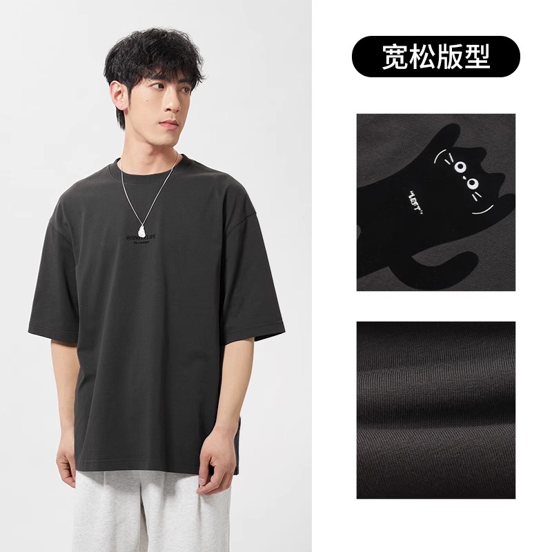 【凉感&抗菌&速干】zuo左男装宽松短袖T恤 萌趣猫咪图案 ...