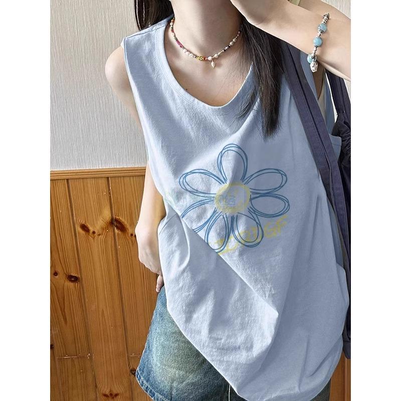 纯棉吊带坎肩背心无袖t恤女2025新款夏季外穿宽松篮球服挂脖...