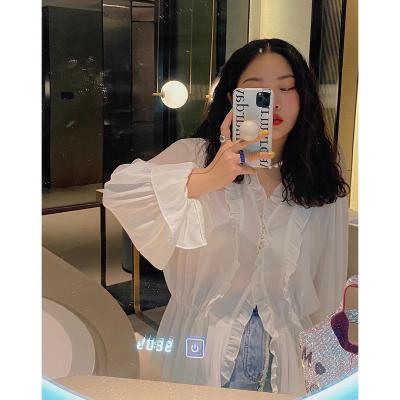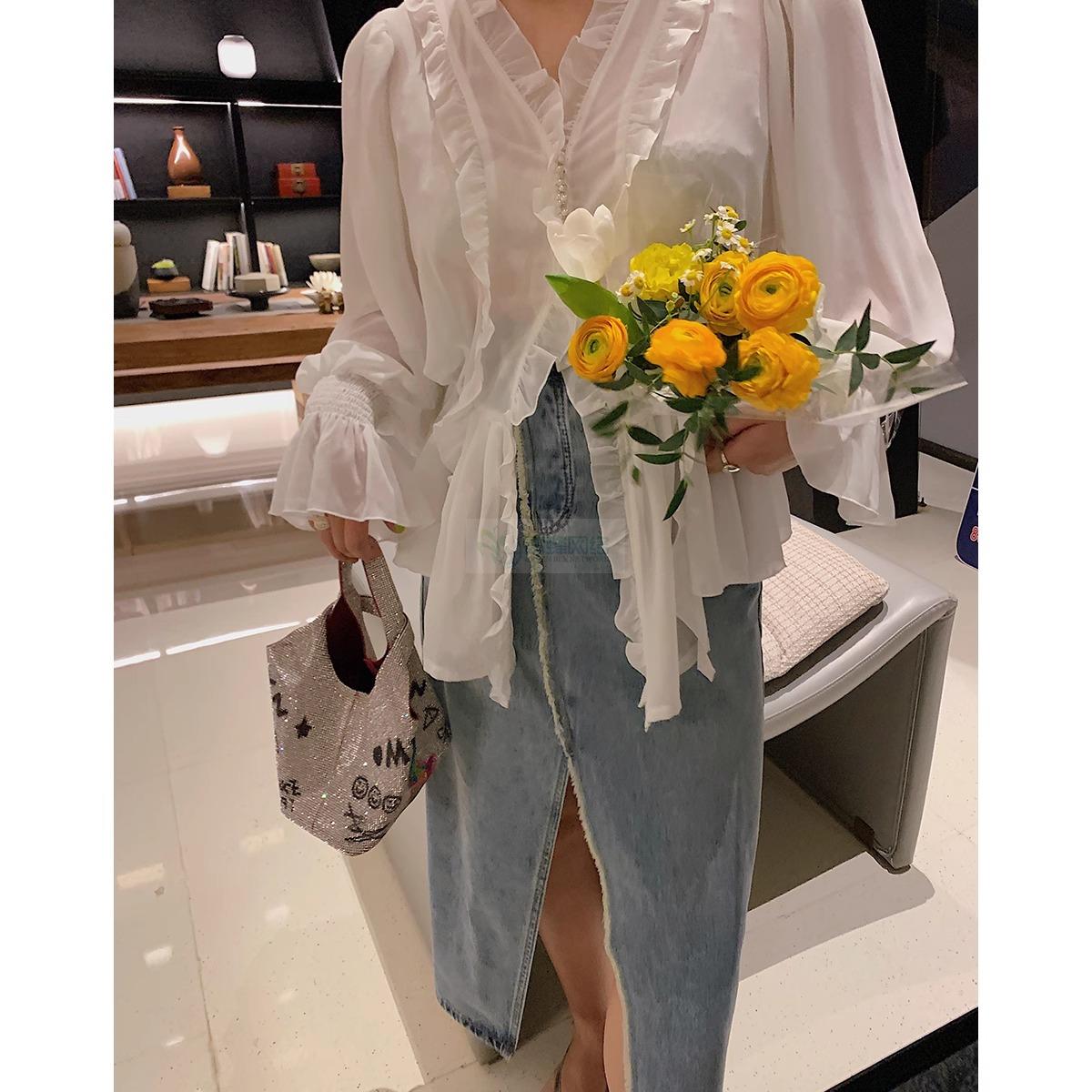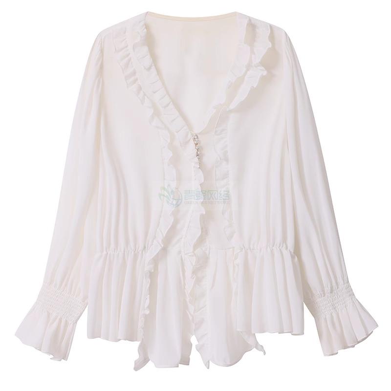 Dazi金大支雪纺衫女2025新款早春季时尚洋气超仙薄款白色小衫上衣