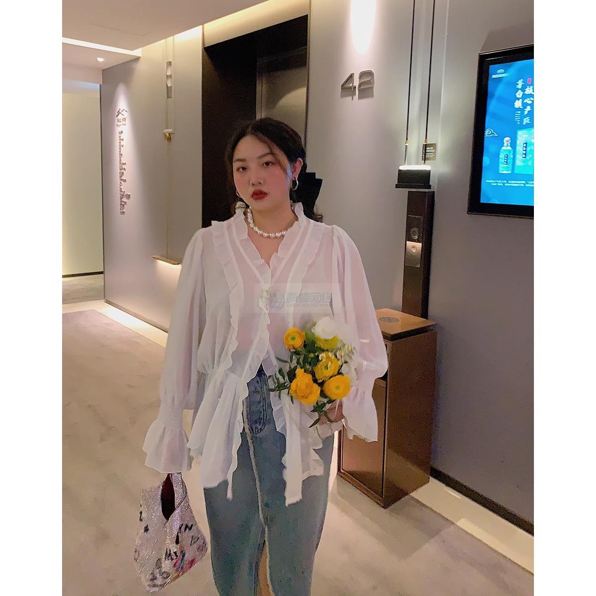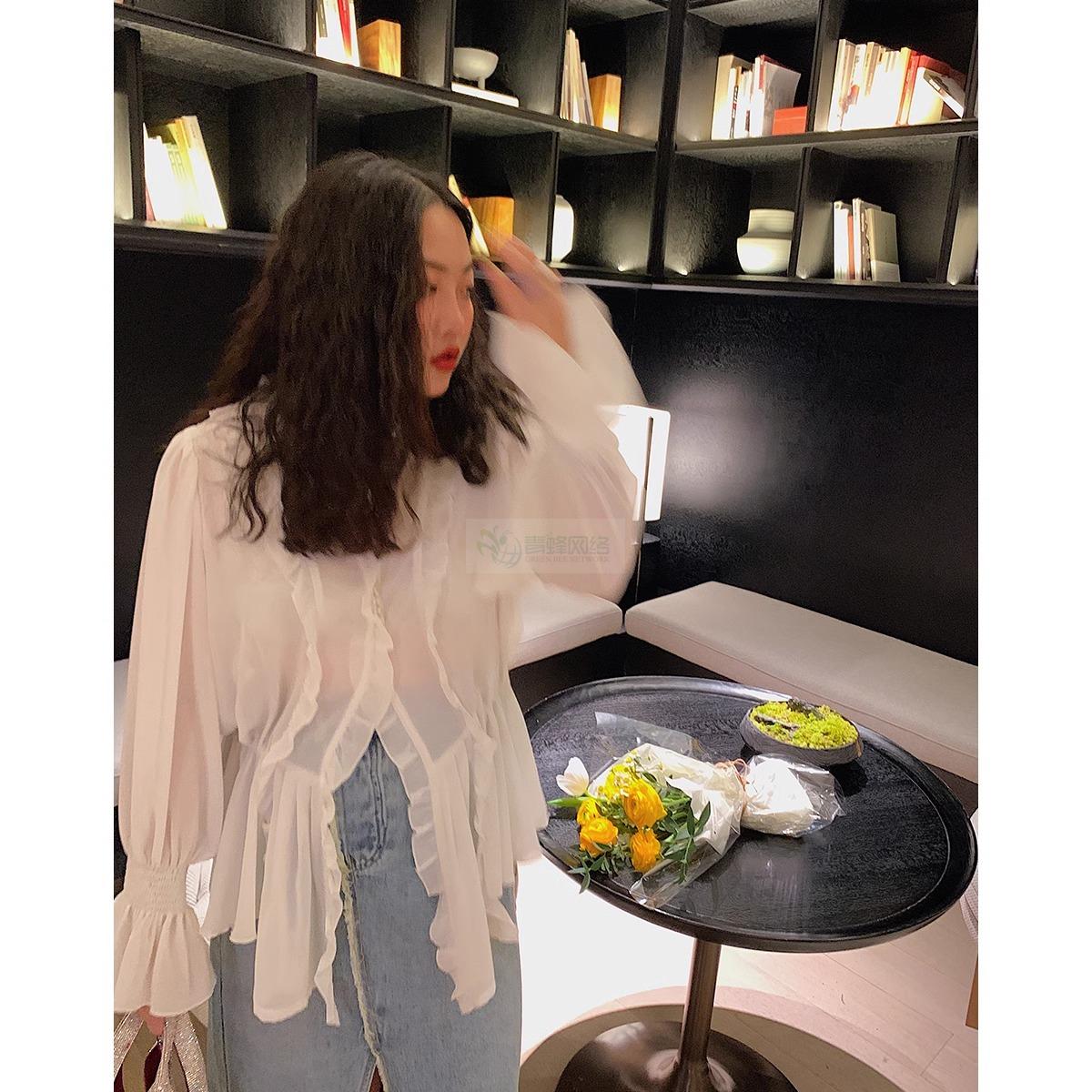 Dazi金大支雪纺衫女2025新款早春季时尚洋气超仙薄款白色...