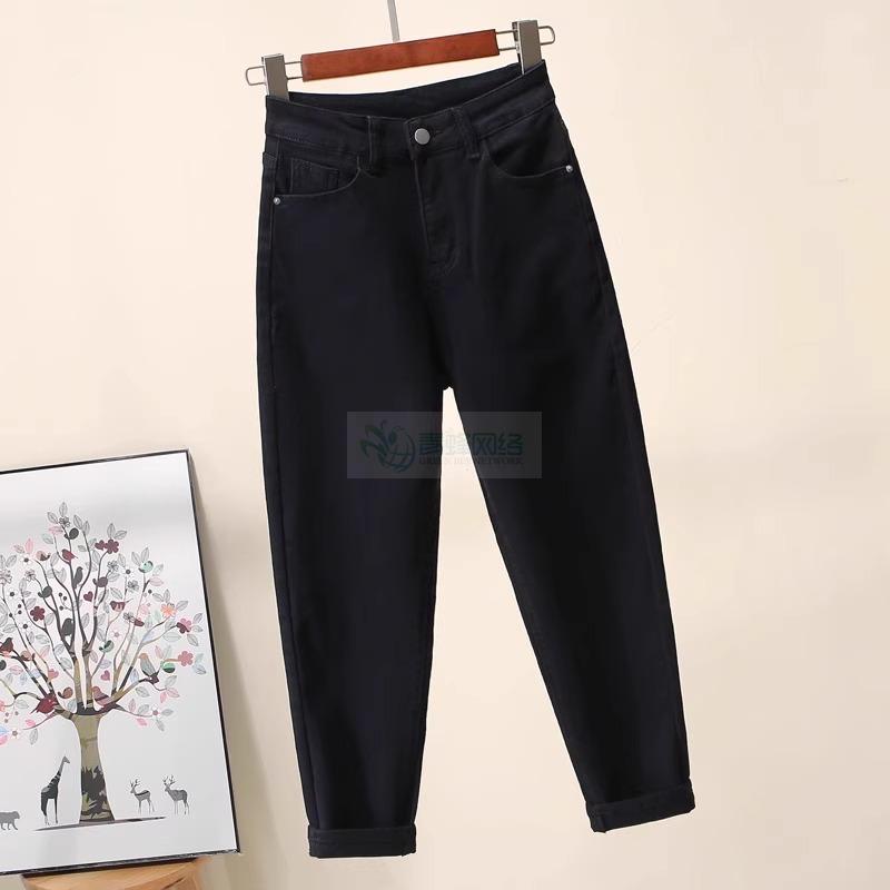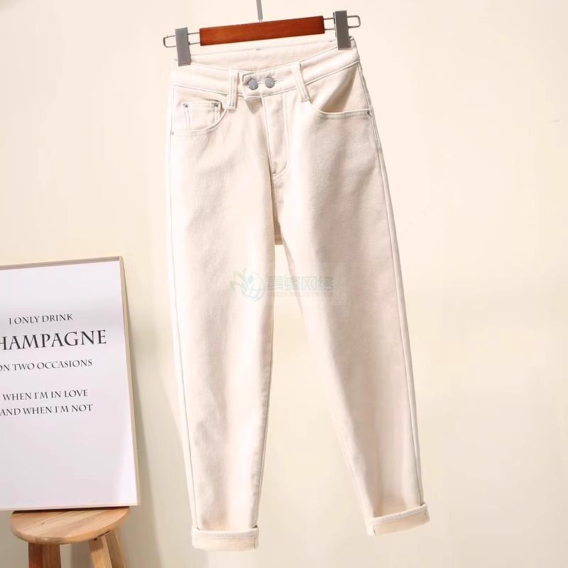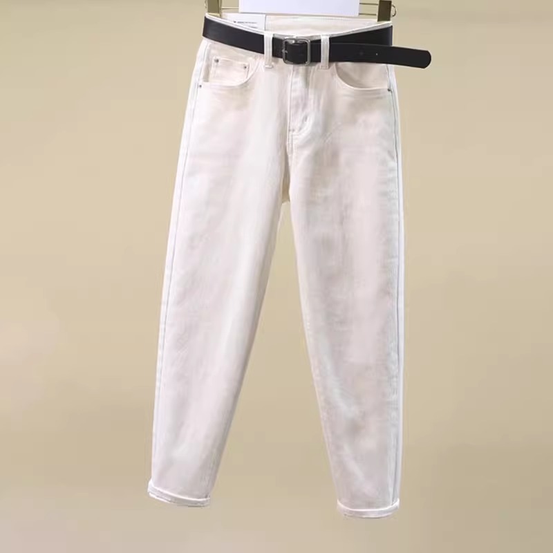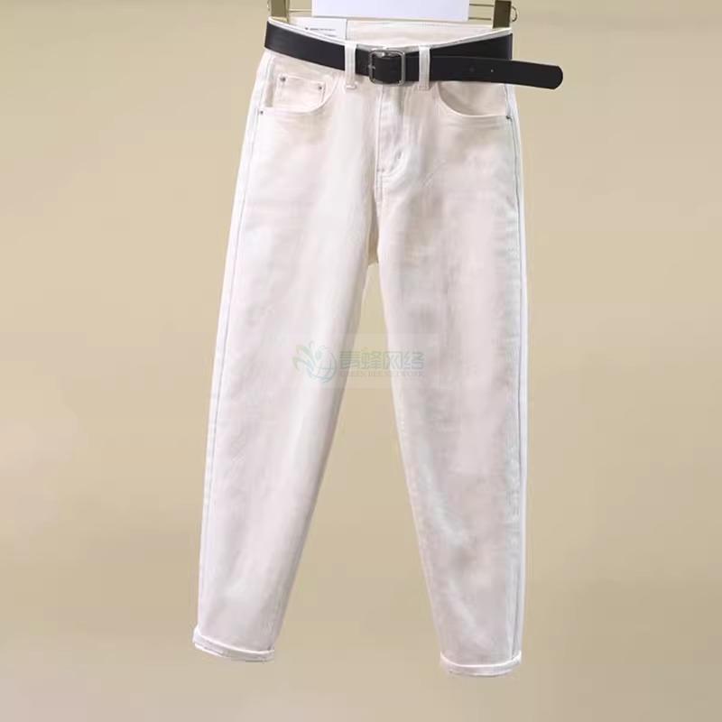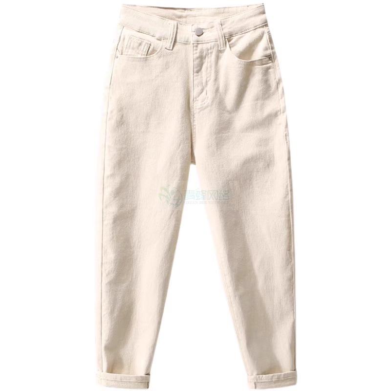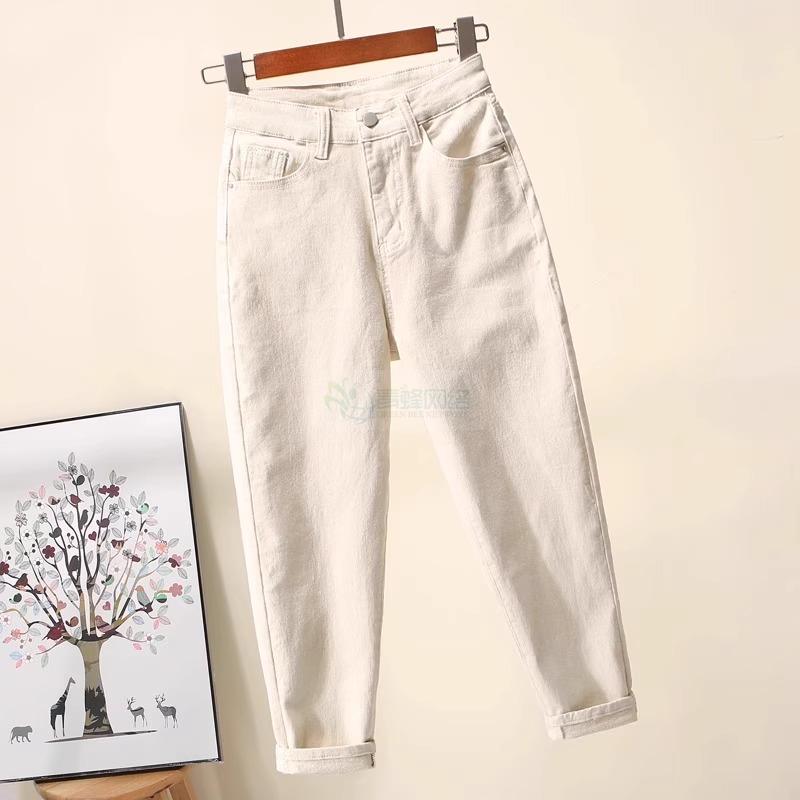 米白色牛仔裤女2025春夏薄款宽松大码哈伦裤梨形杏色九分老爹...