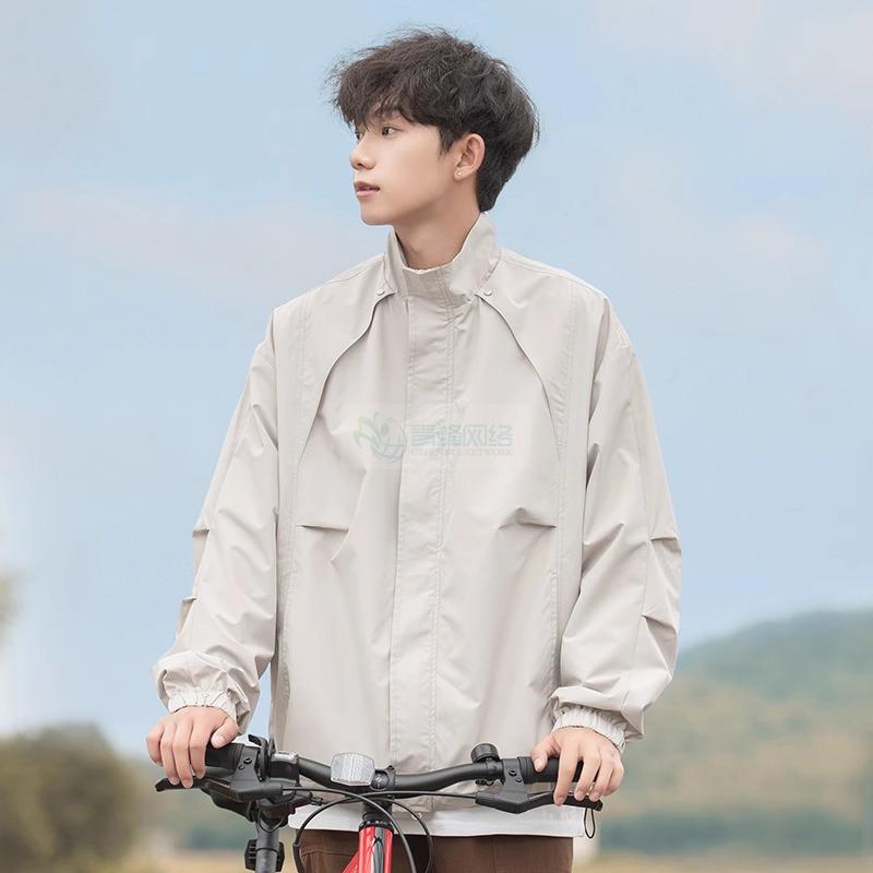 男生米色防风外套男春季男装潮牌2025新款美式立领夹克上衣百...