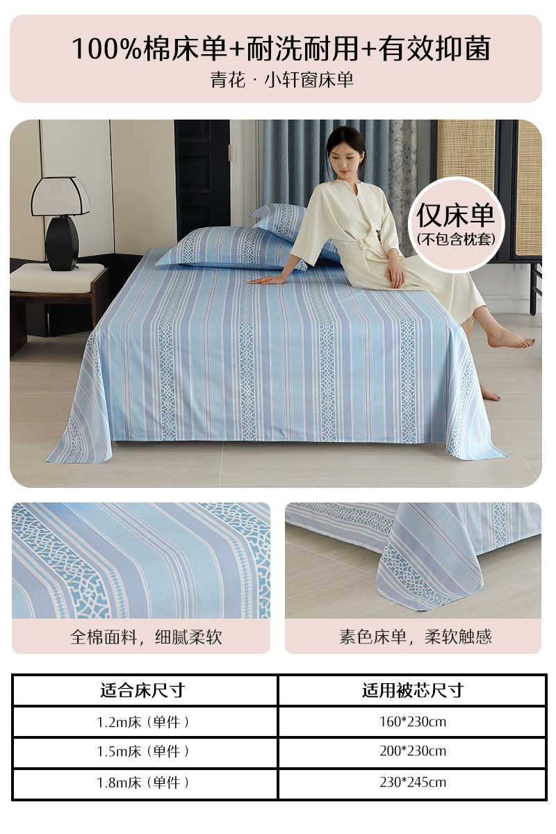 水星家纺纯棉床单单件单人学生宿舍100全棉加厚双人床被单床品