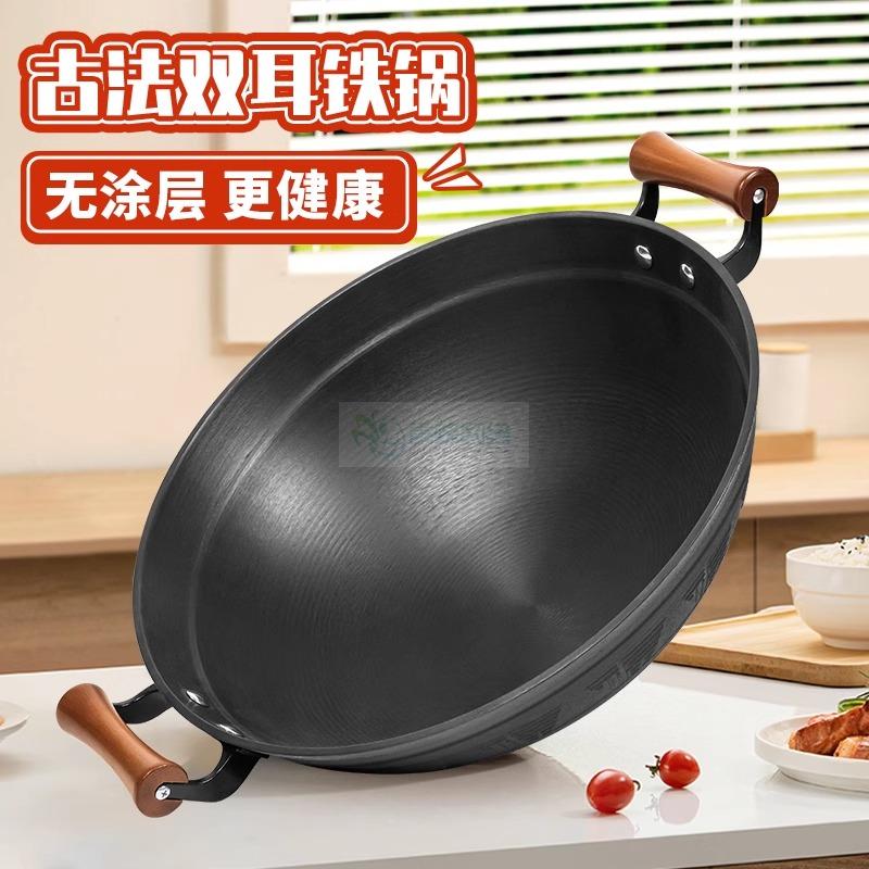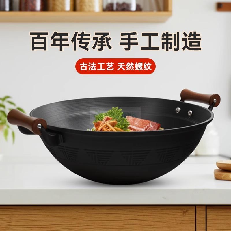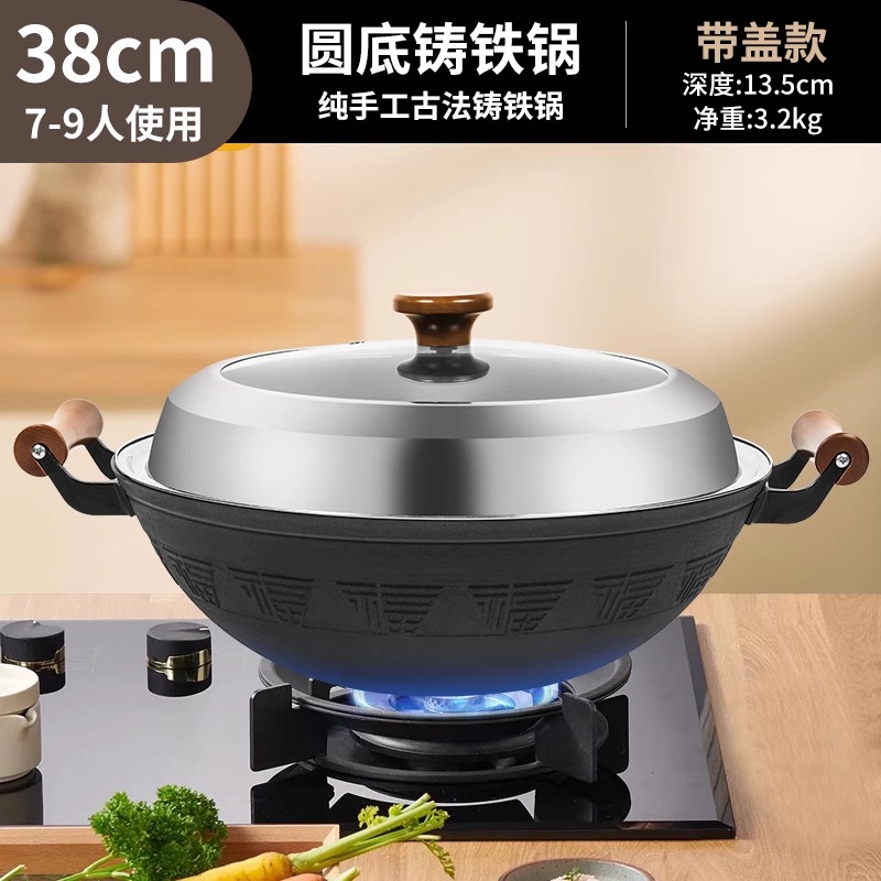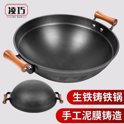 凌巧老铁锅加厚无涂层圆底铸铁炒锅燃煤气通用加深生铁手工炒菜锅