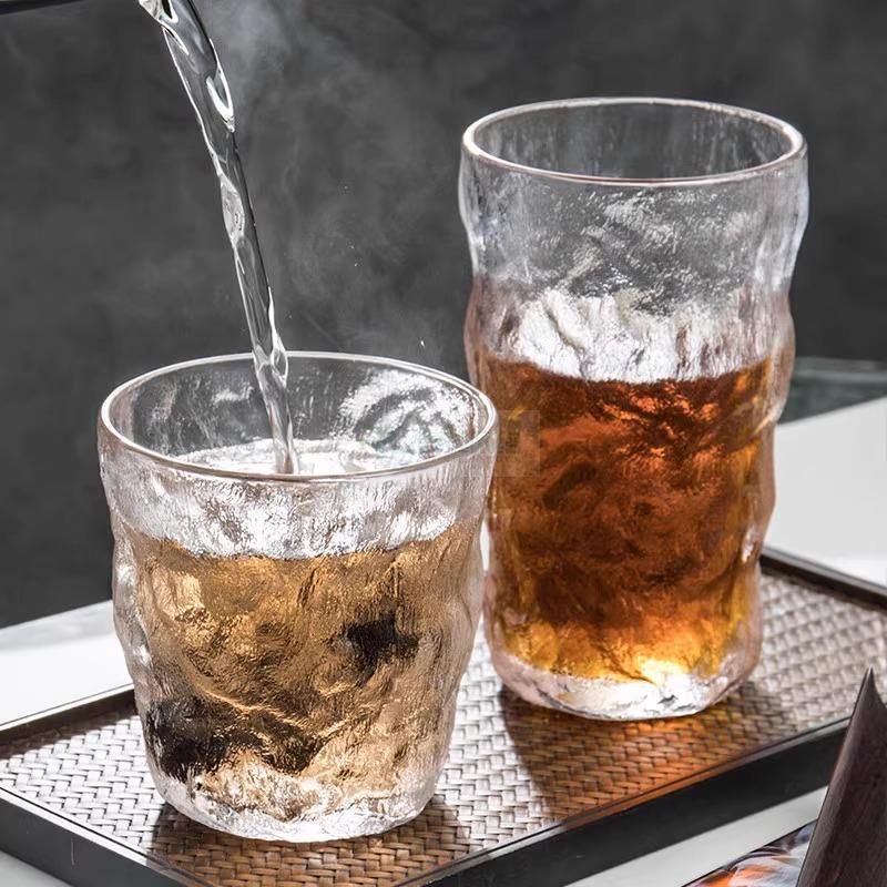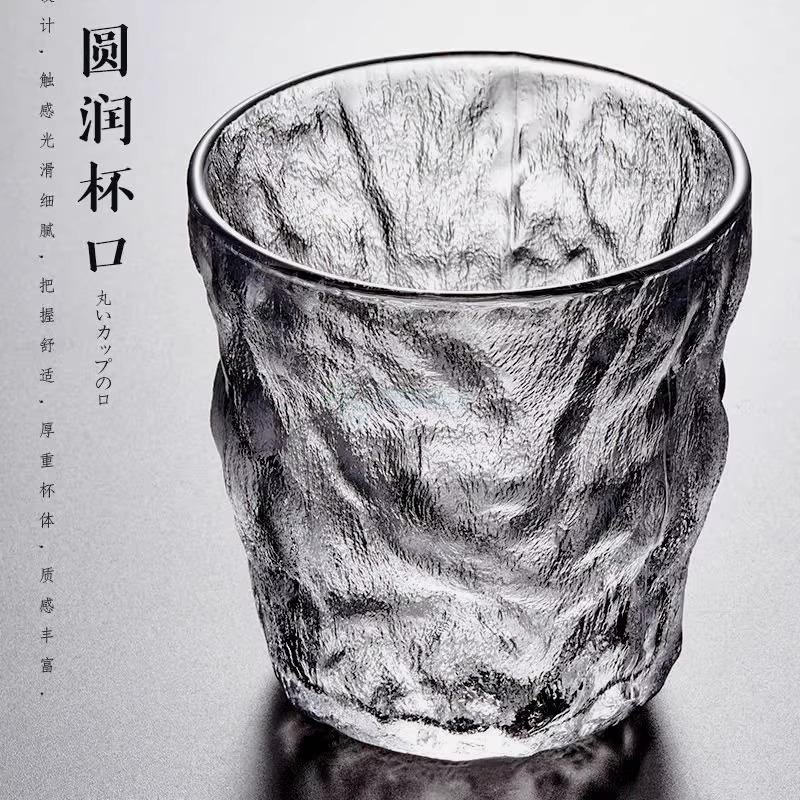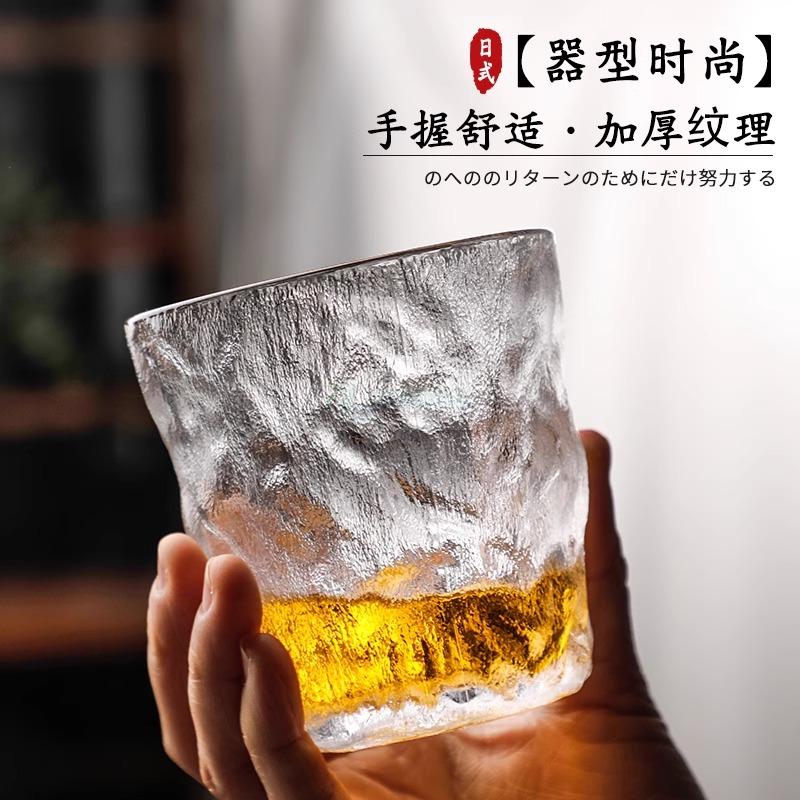 日式冰川杯水杯ins风玻璃杯喝水洋酒杯威士忌锤纹茶杯啤酒杯家用